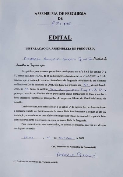 No dia 12 de outubro de 2025, confiaram-me, através do vosso voto, a responsabilidade e a honra de assumir a presidência da nossa Junta de Freguesia. A cada um de vós, deixo expressa a minha profunda gratidão.